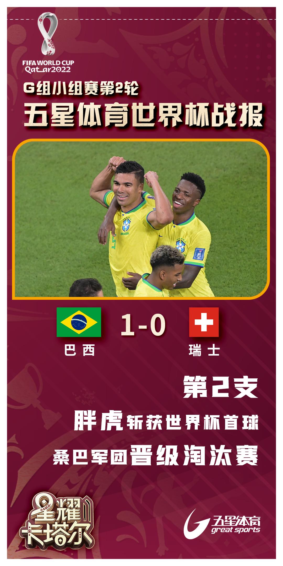 但这场比赛的进球,直到第83分钟才到来,罗德里戈禁区前沿横穿,卡塞米罗前插起脚抽射,皮球窜入远侧网窝,这是他的个人首个国家队进球。巴西成为第一支连续17场世界杯小组赛保持不败的球队,这也是巴西时隔16年,再次连续战胜欧洲球队。