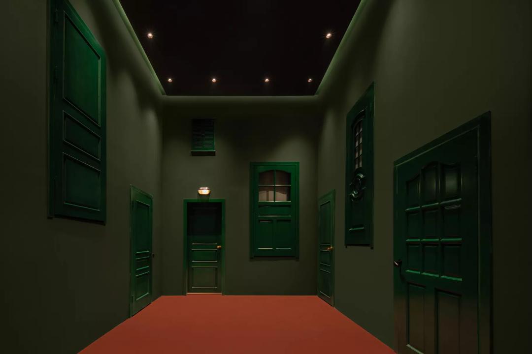 踏入 MEWS马厩圆弧形的下沉广场,HOTEL EUTROBIA 的英文灯牌十分醒目。穿过复古的设计和半开放的前台,走入门厅,一副颇具趣味性的画面,出现在眼前,这里的六扇门,要先开哪一扇?决定权交给了观众自己。