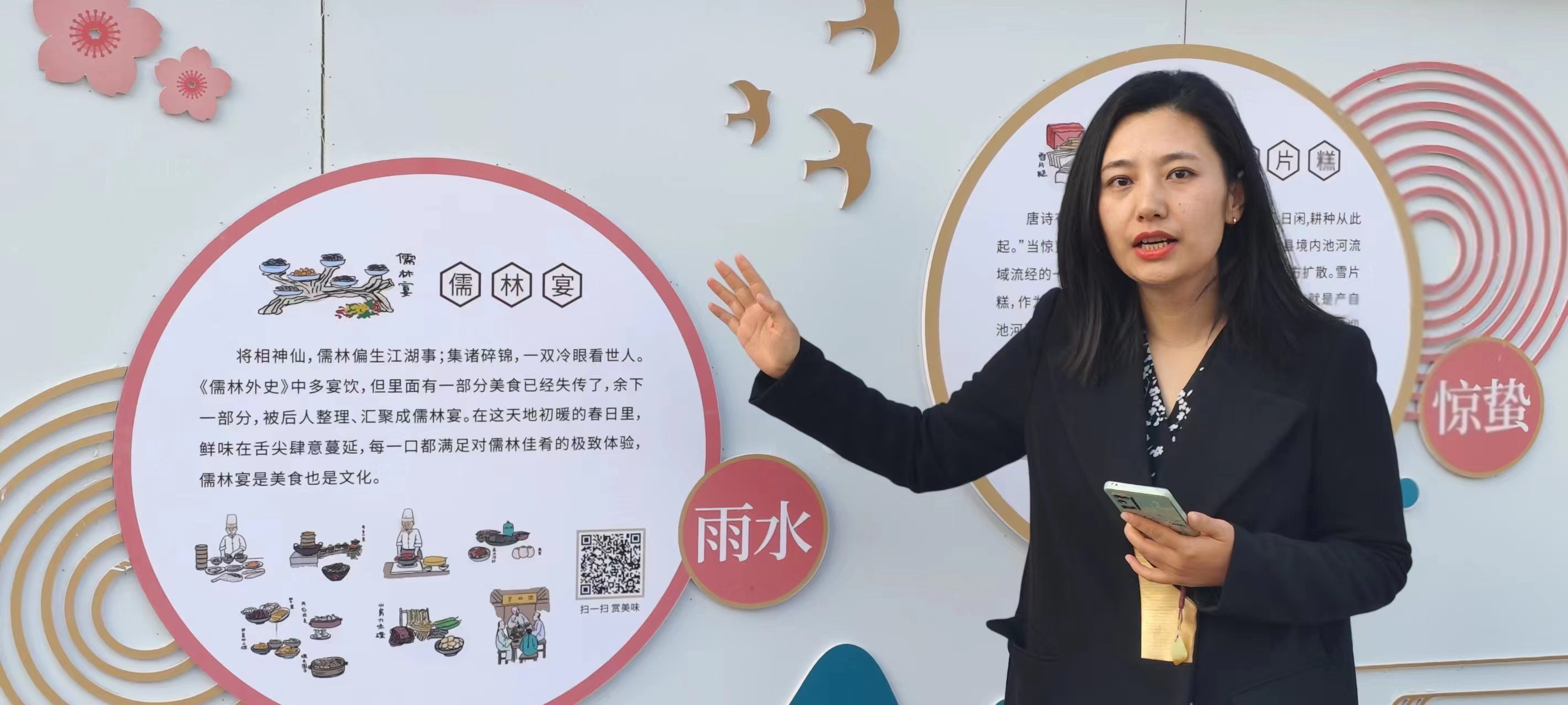 位于琅琊区遵阳社区的“二十四节气里的滁州味道”主题街区,得知15万字的融媒体书《二十四节气里的滁州味道》被浓缩到一面墙上,并用“图、文、码”的形式,对传统二十四节气由来、民谚、诗歌等内容及滁州文化进行二次发布和传播,网络名人们纷纷驻足观看、聆听。