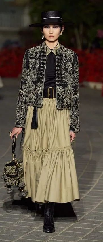 短外套+半长裙,这种上短下长的搭配对任何身材来说就更友好一些,有一种甜酷的少女气息。