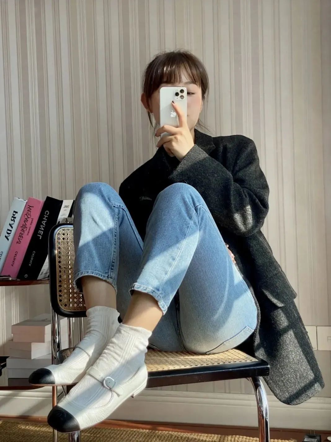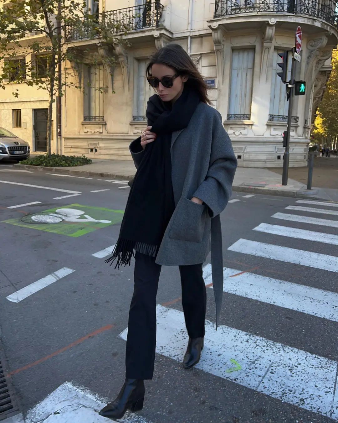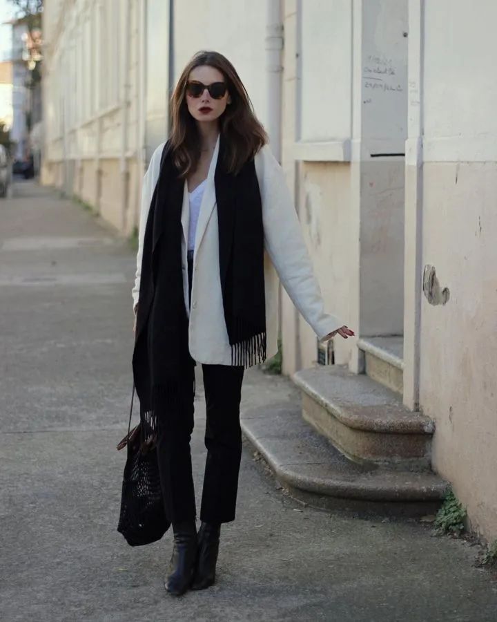 如果偏爱法式风格的姐妹,可以试试九分裤+踝靴的搭配,上身就是个复古气质的法式美人。