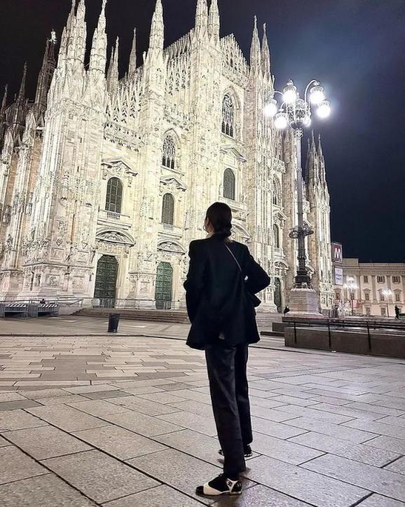还可以换成一条小黑裤,黑色顺延的造型在视觉上有很好的延伸效果,简约而不简单。