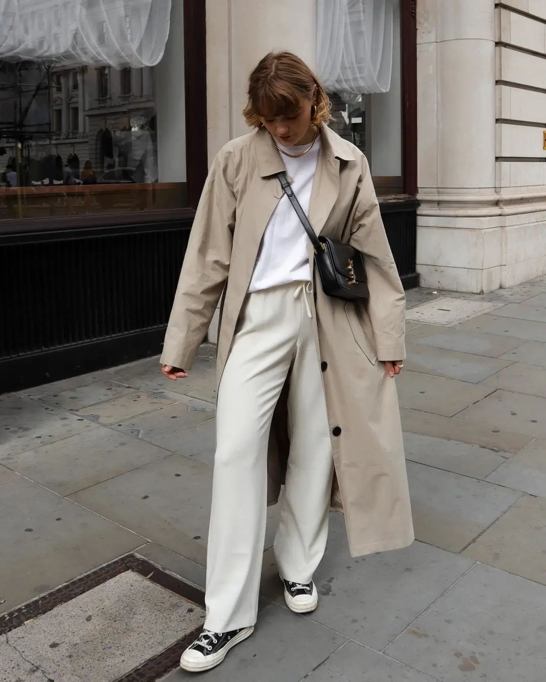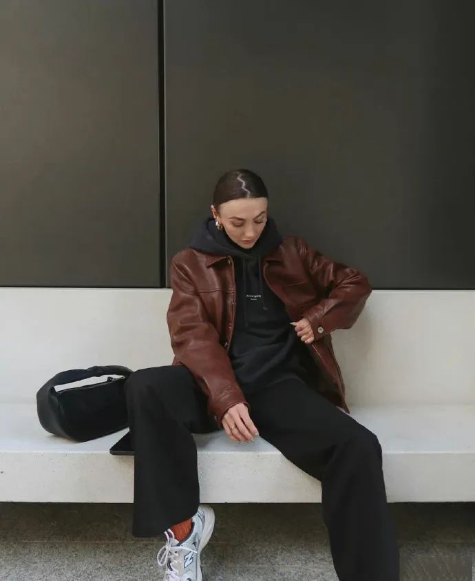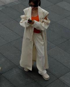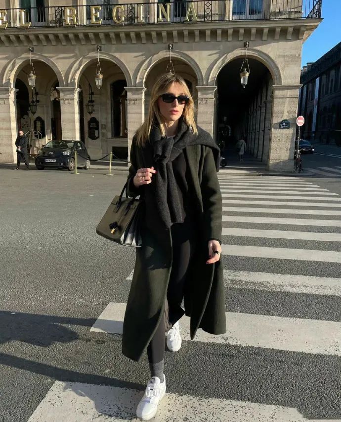 十度左右的天气也能很好拿捏这种look,与鞋子撞色呼应,营造出一股不刻意的慵懒活力,“妈妈再也不用担心我的脚踝受冻了”,而且造型感满满!