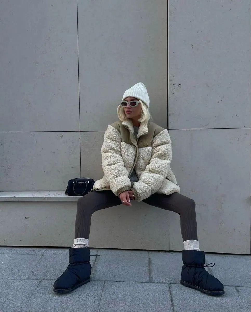 今年还很流行这种羽绒式的大头鞋,虽然足够暖和、显腿细,但露出一点袜子边边,反而更有慵懒松弛的时髦韵味,小个子女生也能适配!
