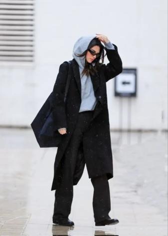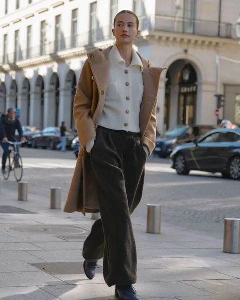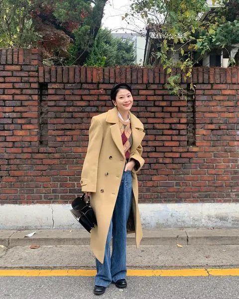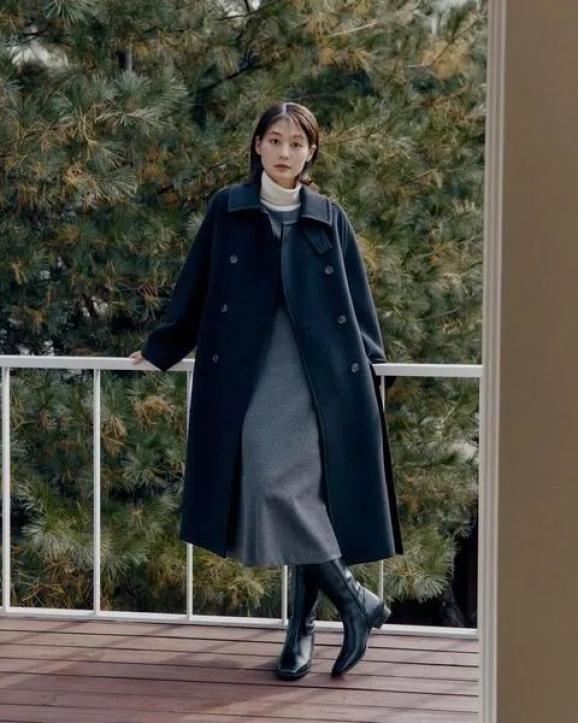 像我们梨型身材的姐妹,冬天就可以试试把保暖裤换成厚实的牛仔、灯芯绒等拖地裤,巧妙化解胯宽、腿粗的尴尬,在冬日轻松的绽放自己的美!