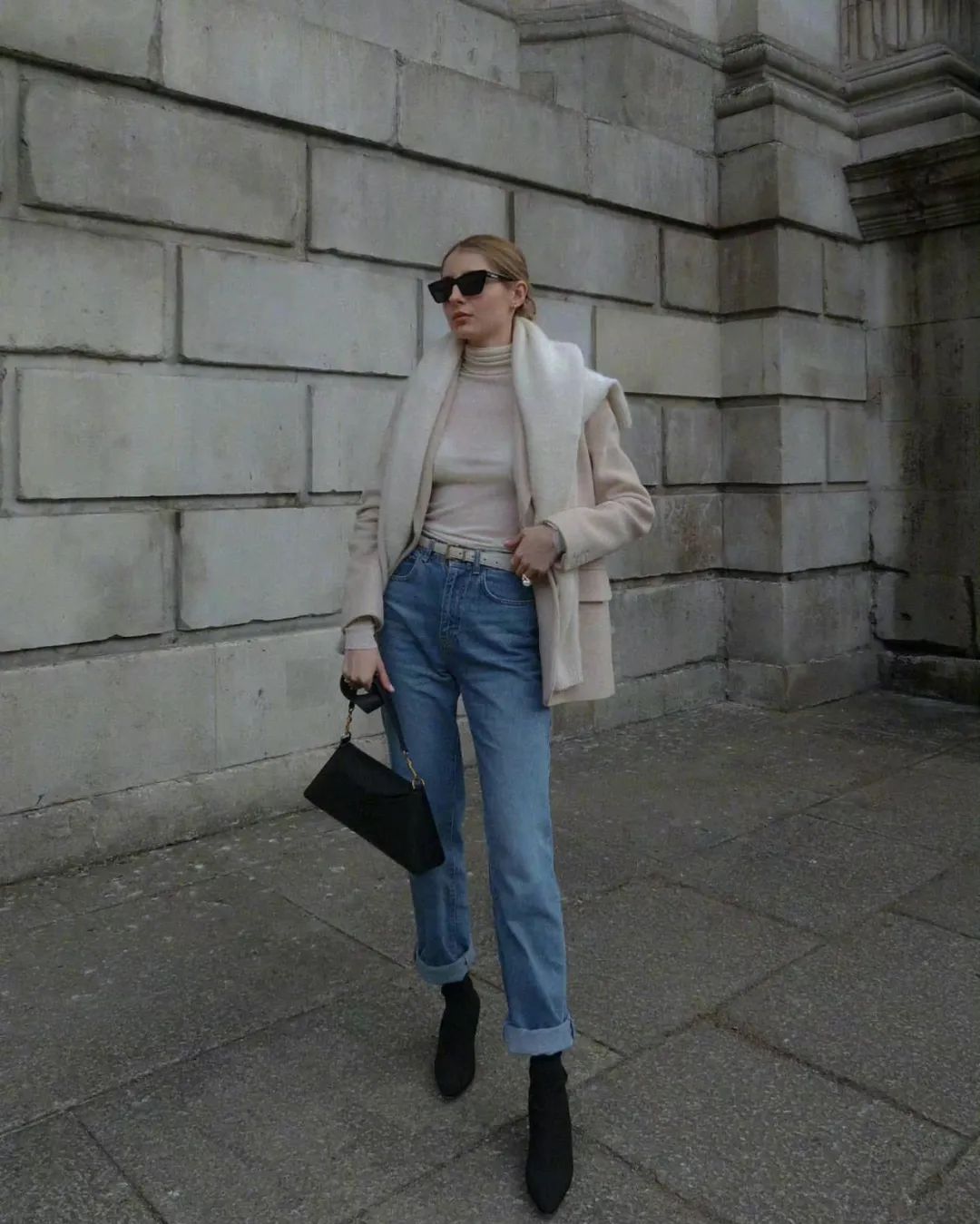 Beginning of Winter一身简单的基础款搭配,想穿得出彩,可以借助短靴的优势,让裤子与靴子刚好拼接在一起,既不露肤又有层次感,再也不用担心进风受冻了。