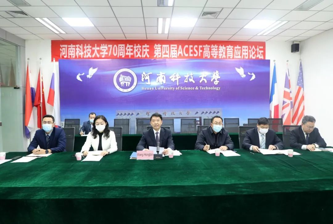 11月24日下午,河南科技大学建校70周年校庆国际论坛暨第四届ACESF高等教育应用论坛通过云视频方式隆重举行。法国亚眠市副市长帕斯卡尔·弗雷德库先生(Pascal FRADCOURT),法国驻华大使馆合作与文化行动司高等教育、研究与创新参赞杜马科先生(Marc DAUMAS),校党委书记王洪彬教授等出席会议。来自法国萨克雷大学、巴黎东大学、波尔多大学、山东第一医科大学、郑州航空工业管理学院等30余所中法高校师生代表近千人线上参加论坛。论坛由法国中法教育交流协会主席任树磊先生和该校国际合作与交流部部长毛鹏军教授共同主持。