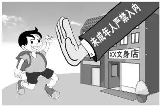任何企业、组织和个人不得刊登、播放、张贴或者散发含有诱导未成年人文身、危害未成年人身心健康内容的广告;不得在学校、幼儿园播放、张贴或者散发文身商业广告。
