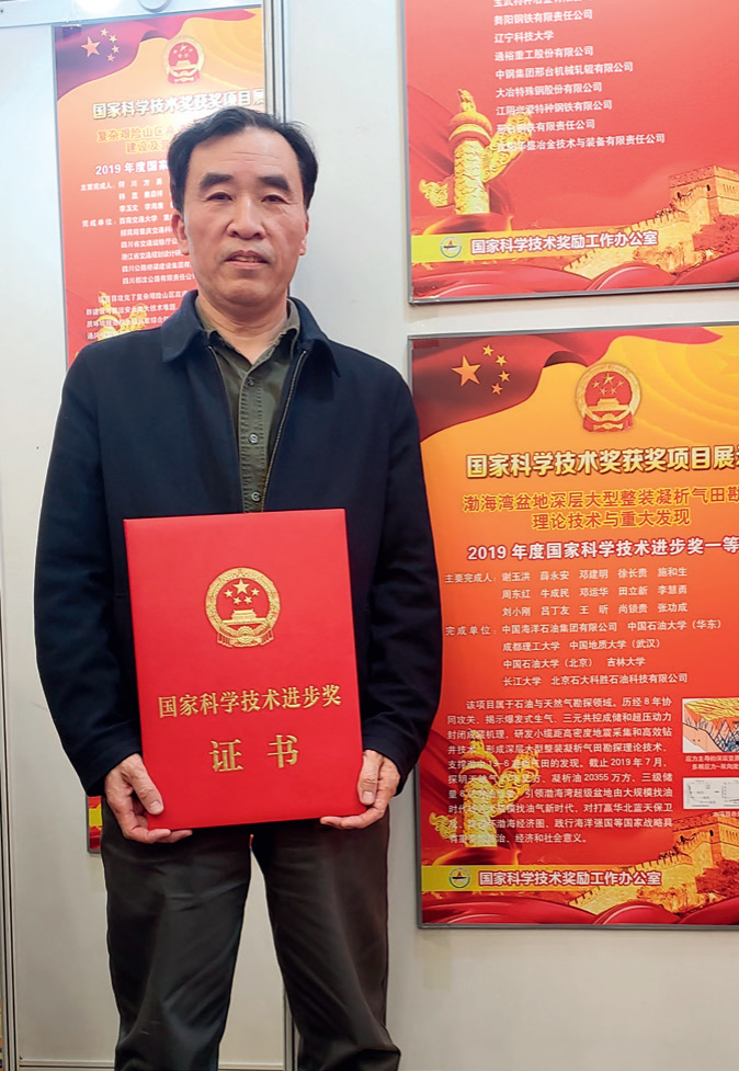 ▲薛永安手捧2019年度国家科技进步奖一等奖的证书