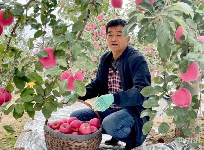 果农黎兴旺正在采摘苹果(央广网发 马丽丽 摄)