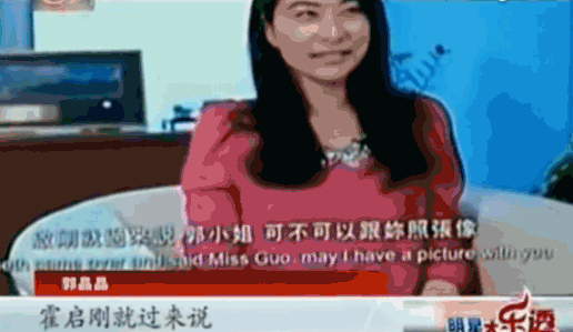 第一次合影刚结束,霍启刚转身又来和郭晶晶拍照。郭晶晶问,你怎么又来了,霍启刚还有点怯生生:刚才是别人的相机,我不一定能拿到照片。