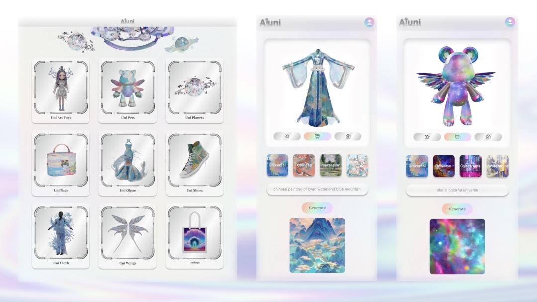 图/AVAR产品Aiuni中AI生成的数字商品