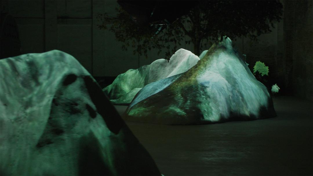 2022年第59届威尼斯双年展上,刘佳玉参展作品《虚极静笃》,以AI描绘地形的方式重塑了中华地貌。一年时间里,刘佳玉带领其团队成员从贺兰山脉出发,获取中国大陆山脉的真实数据信息,结合中国历代水墨画,让AI进行深度学习训练,最终生成“既虚拟又真实”、展线覆盖约30米的“山脉雕塑”,于中国馆展出。