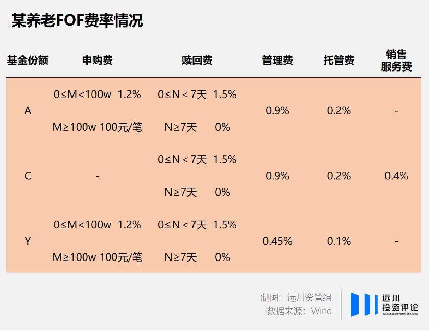 我们以某养老FOF为例分别计算A、B和Y份额的费率情况。