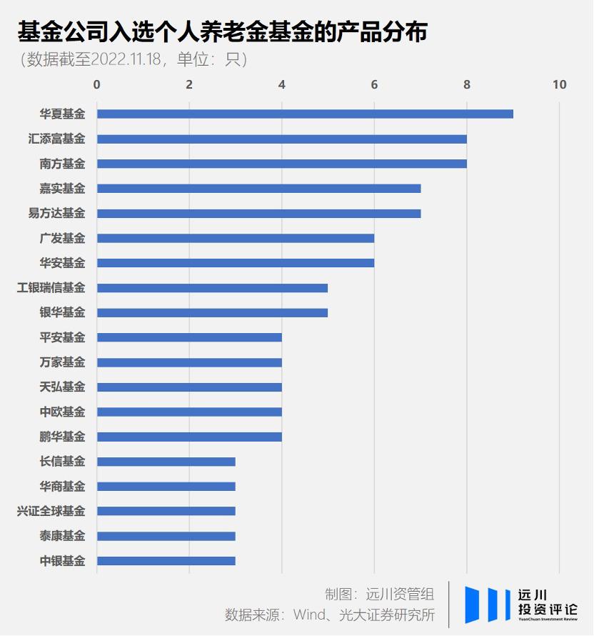 11月18日,证监会发布首批个人养老金基金名录,包括华夏基金、广发基金等40家基金公司在内共计129只基金产品。其中华夏基金共入选9只产品并全部增设Y份额,位列市场第一。