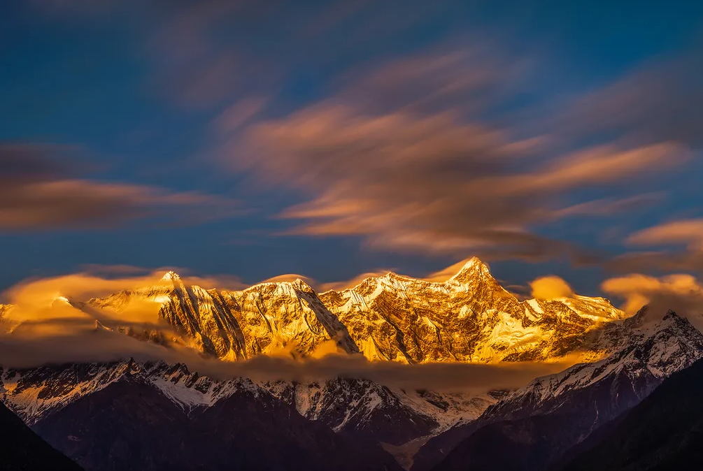 相较于墨脱其他乡镇,处于雅鲁藏布江大峡谷印度洋水汽大通道中的背崩乡的平均海拔更低。这里的山势叠嶂峰峦纵横,繁茂森林邀云聚会,清澈河流源远流长。清晨山间或浓或重的晨雾,江面上升腾的云海,与低垂的绿色、雄伟的雪山构成了一幅幅唯美的画面。