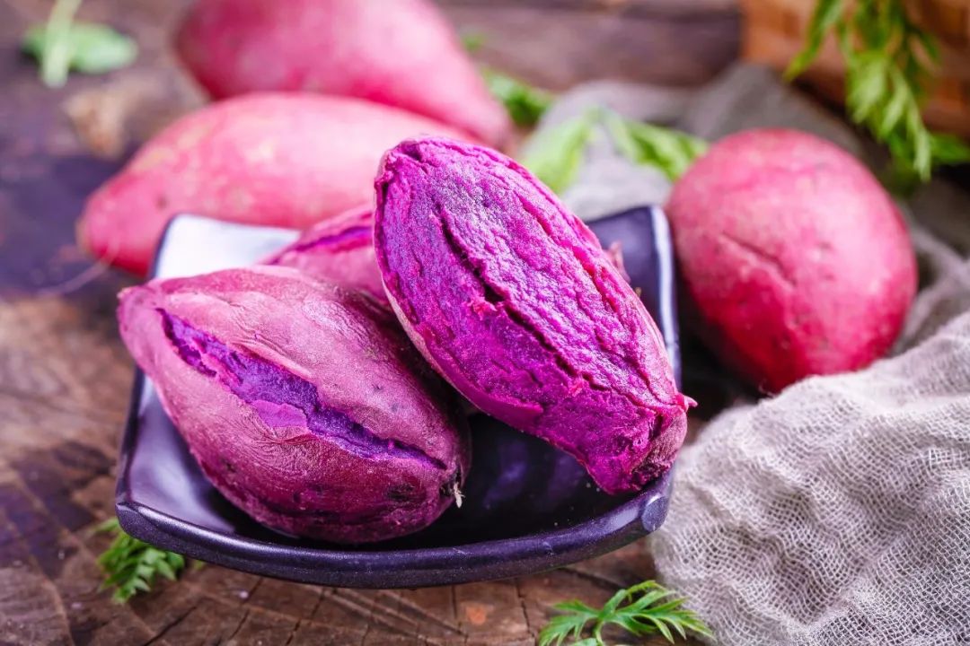 紫薯的特点是淀粉少,而蛋白质多,这几年颇受大众的喜爱。紫薯中花青素含量高,微量元素也很丰富,花青素具有抗氧化、保护肝脏、改善肠道菌群等作用,对皮肤和眼睛的健康尤其有益。