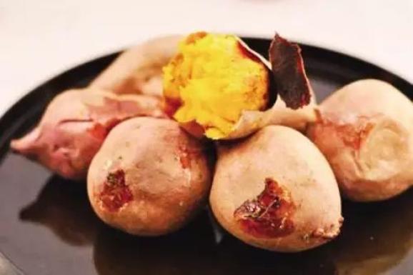 红薯淀粉少,吃起来香甜、柔软、不噎人,因为含水量和含糖量都比较高,比较适合烤着吃 。