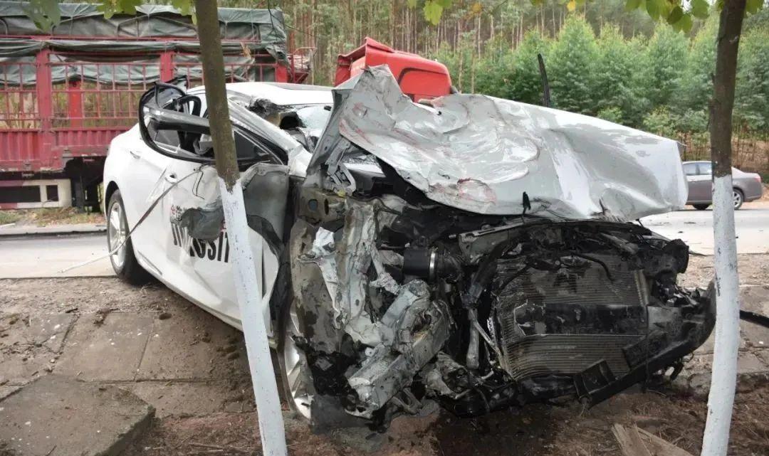 还有一辆车头“面目全非”前挡风玻璃碎裂