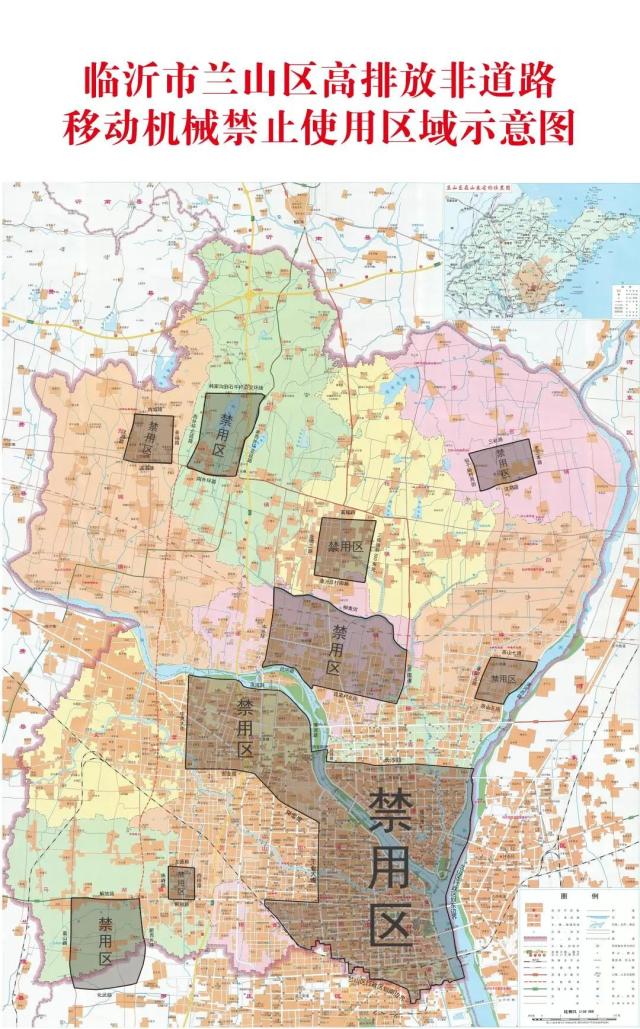 兰山辖区镇街道、兰山经开区非道路移动机械禁用区划定: