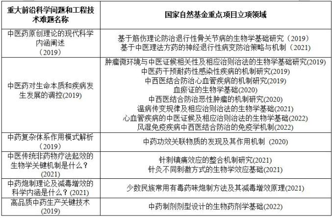 “中医药重大科学问题和工程技术难题(2019-2021)”在国家科技布局中的应用