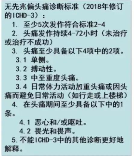 图1a 无先兆偏头痛诊断标准