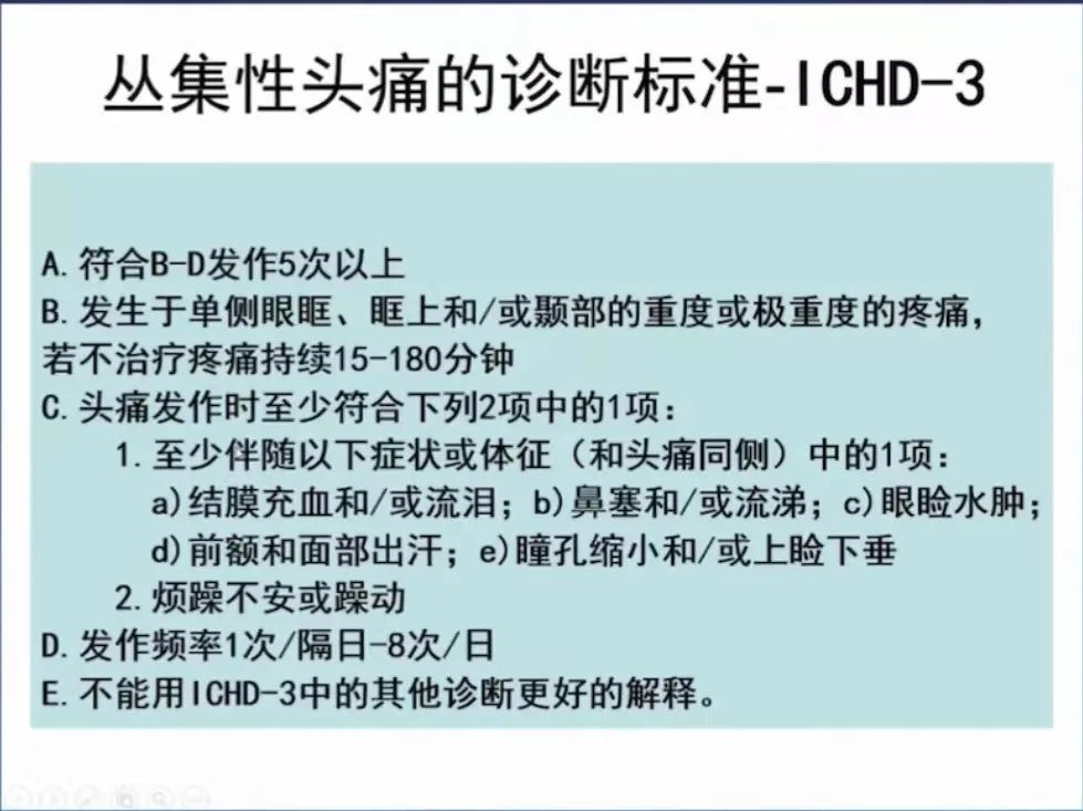 图3 丛集性头痛的诊断标准
