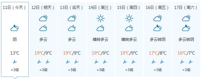 13日晚上到14日白天,全区晴到少云,高寒山区和桂东北局地有霜冻或冰冻。最低气温:高寒山区零下3~1℃,桂东北2~6℃,其它地区6~10℃。