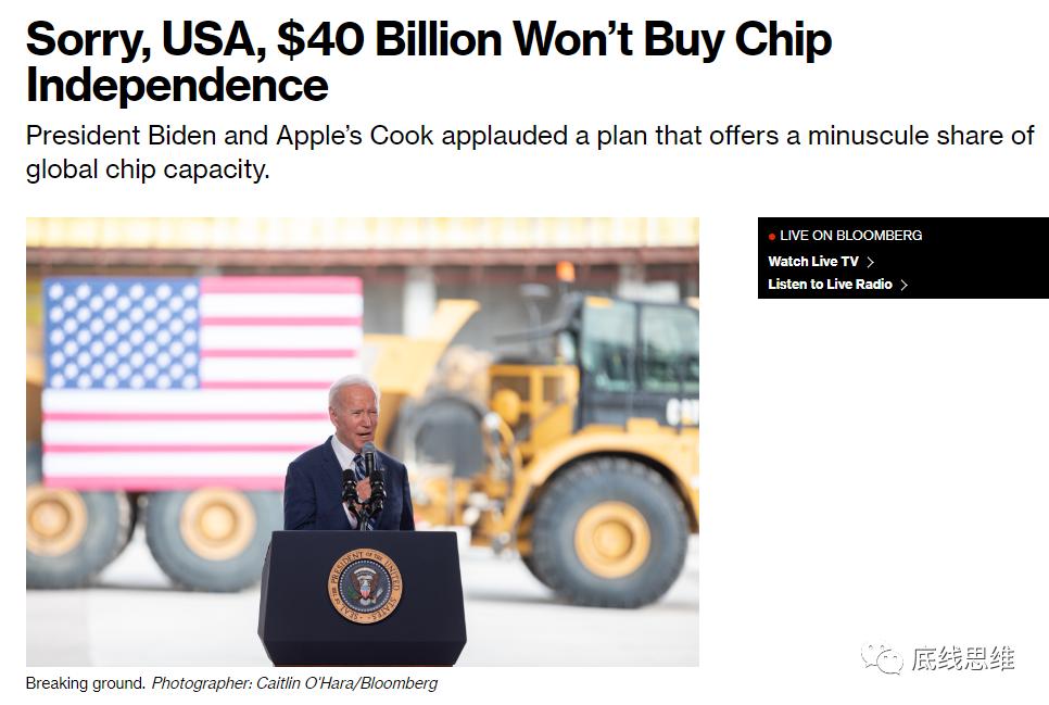 拜登浮夸地说,苹果现在可以在本土供应链取得更多,“这会改变游戏规则”。对此,彭博社一篇文章《对不起,美国!400 亿美元买不到芯片独立》将账算得不错,其结论就是“(台积电的)400亿美元,仍不足让美国自立,只是买下吹牛权利”。