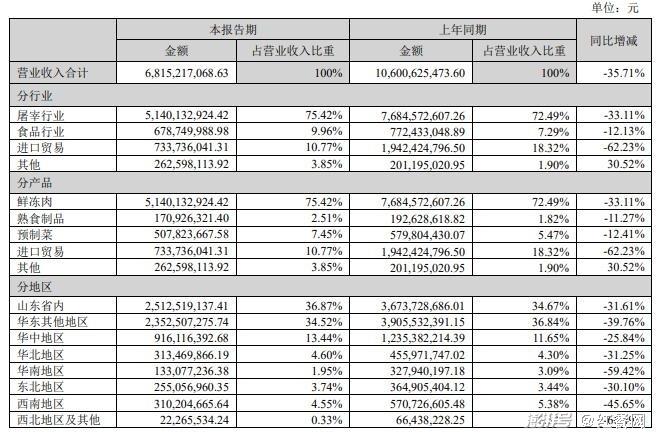 进入2022年,受各方面因素的影响,虽然今年上半年,龙大的预制菜营收占总营收的比重有所上升,但与去年同期相比,预制菜的营业收入约5.08亿,却同比下降12.41%。熟食制品则同比下降11.27%。而预制菜业务营收占比的提升,来源于原本营收第二的进口业务营收出现62.23%的较大比例下滑。