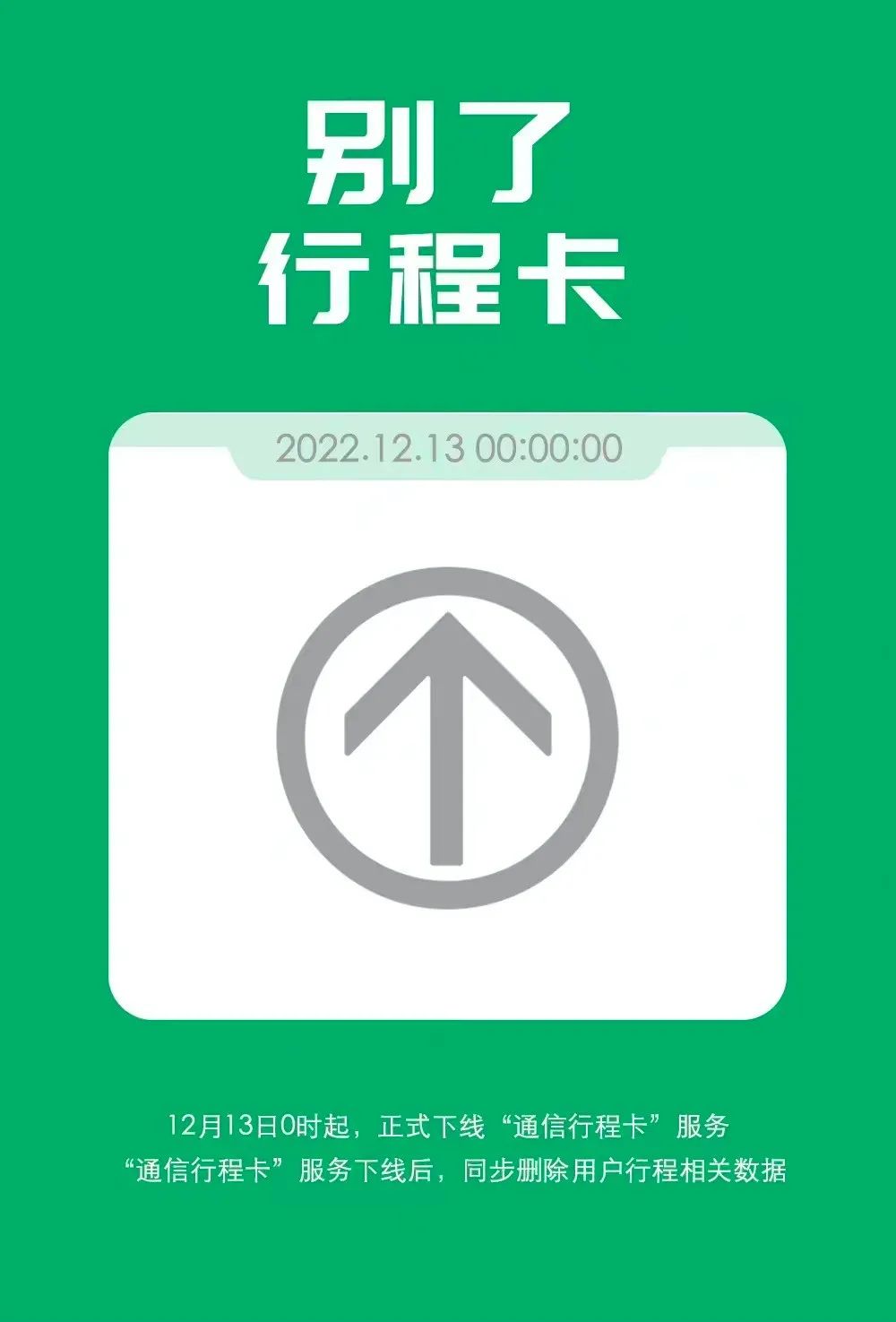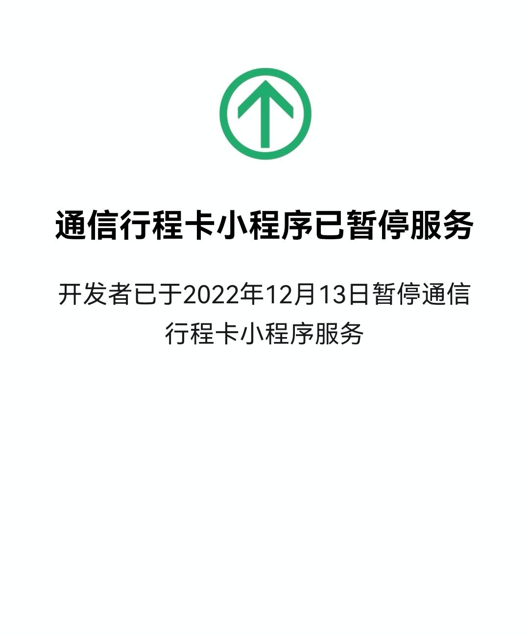 12月12日,据“通信行程卡”微信公众号消息,12月13日0时起,正式下线“通信行程卡”服务。“通信行程卡”短信、网页、微信小程序、支付宝小程序、 APP等查询渠道将同步下线。