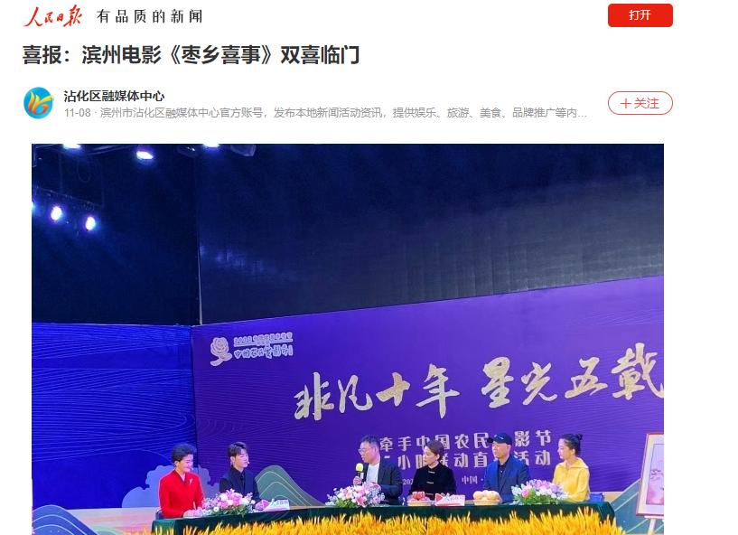 6传播力排名第六的是宣传报道《山东沾化首部渔鼓戏电影〈枣乡喜事〉喜获国家三项殊荣》,由沾化区委网信办报送,在人民网、经济日报网、滨州网等网络平台发布,阅读量达230万,传播力指数为9.5。