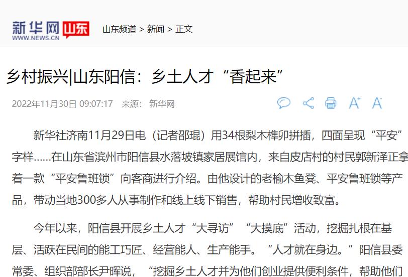8传播力排名第八的是宣传稿件《山东阳信:乡土人才“香起来”》,由阳信县委网信办报送,在中华网、新华网山东频道等网络平台推送,阅读量超180万,传播力指数为9.3。