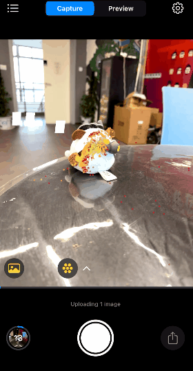 差友们打开 App 之后,直接用摄像头怼着需要扫描的物体进行一顿凶猛的拍照输出,RealityScan 会用 VR 效果展示出一张悬浮的拍摄照片,帮差友们定位。