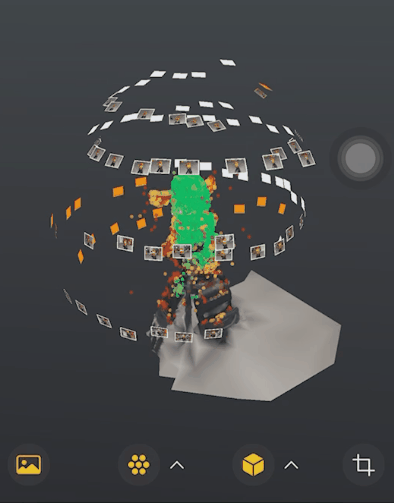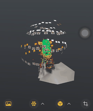 比如会在物体周围显示拍摄的照片,比如用绿色、黄色和红色的点状图来显示扫描物体的完成度等等。