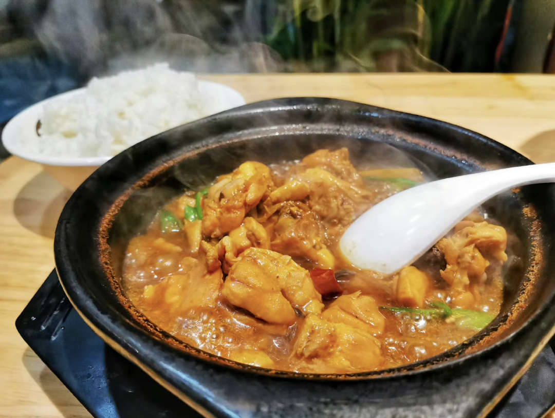 舀起一大勺连肉带饭送入口中,鲜滑多汁的鸡肉混合着软糯Q弹的米饭,然后咸甜不腻的汤汁还完美的填补了两者的空隙,一口下去馋哭隔壁小孩。