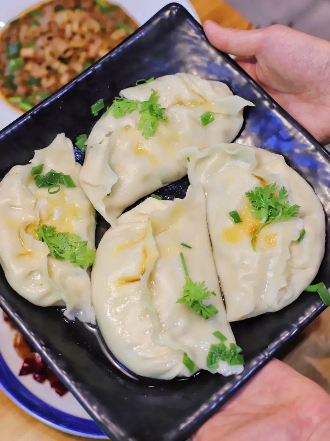 你没看错,好客君说的是“个”。众所周知,山东人的实在在美食上显露得淋漓尽致,而烟台足有一个成年人巴掌大的鲅鱼水饺就是其中代表。