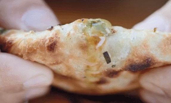 一口咬下,酥脆的饼皮下藏着的是满满的鲜嫩馅料。虽然没有办法辨出这一口里你到底吃到哪一种菜,但到了嘴里就一个字:香,是独属于蔬菜那种鲜甜不腻人的清香。