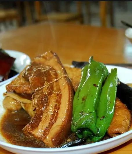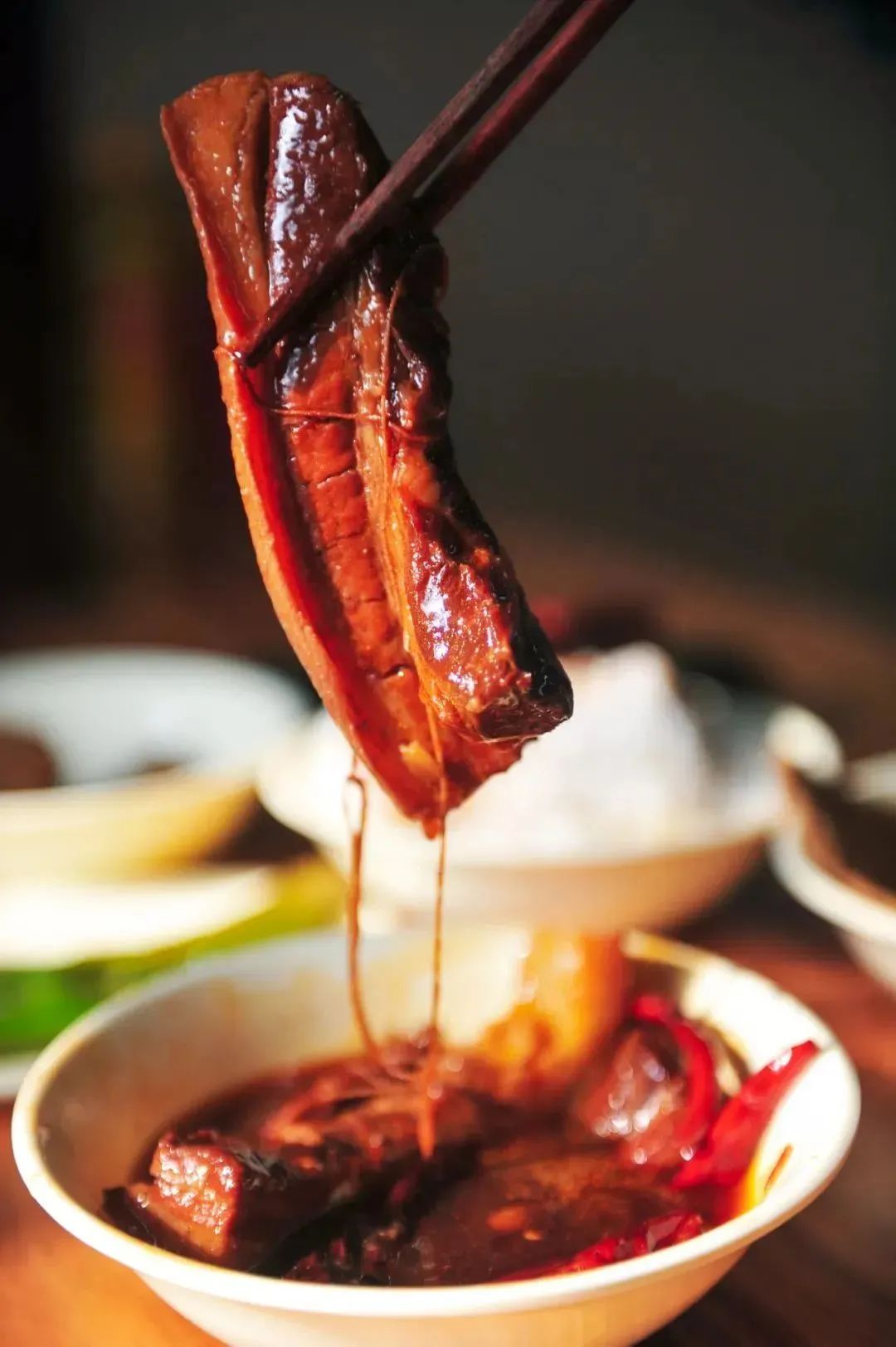 但当你面前出现了一块五花三层,软烂入味的甏肉,旁边是一碗泡着肉汤的米饭,谁还有时间思考?
