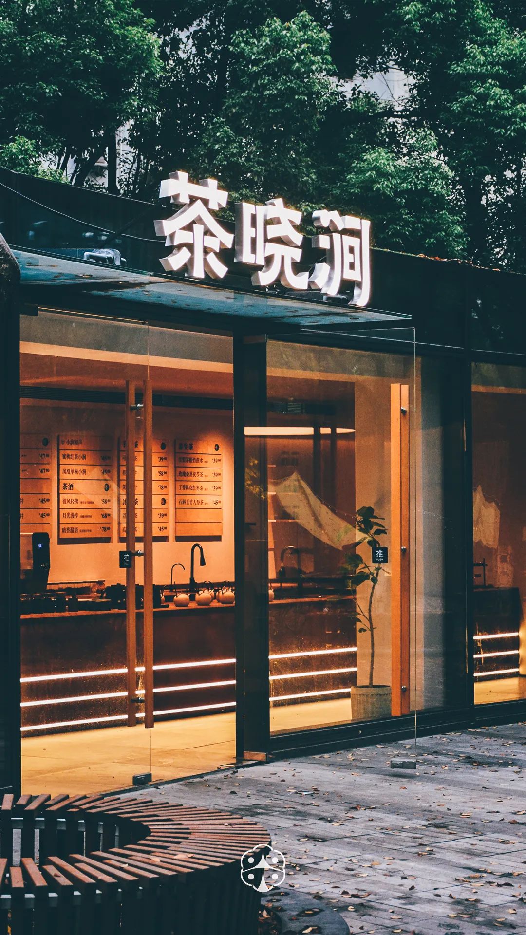m:为什么想要开一间茶饮空间?分享下开店背后的故事吧。S:我认为是缘分到了吧,找创业方向的时候去了很多地方考察,看到不少新茶饮空间被年轻消费者喜爱。中国茶文化根深蒂固,喝茶的人也越来越多,觉得是个很有意义和前景的行业。刚好在杭州黄龙万科中心有一处地方,环绕 24 棵大树,满是自然的灵气,于是和晓风书屋共创了这家茶晓涧。(补充:晓风书屋是杭州老牌书屋品牌,经营二十多年,已有近 30 家书店。)