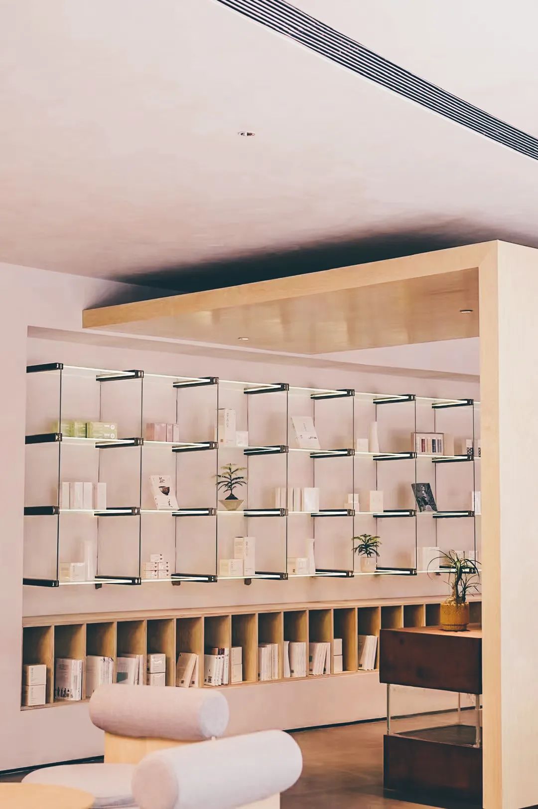 要说空间里另一处吸睛点也包括这一整墙的书了,起初我定了人文、茶学、美学几个主方向,最后都是晓风书屋的掌门人老姜亲自帮我挑选的,结果看到他选的书后,我自己选的都不想要了。书目里没有任何一本是跟商业有关的,却本本都对身心灵有所裨益,且不说内容,仅是封面和书名,都深深吸引人,只能说这些书外面不常见,欢迎大家来空间里品读。我们希望大家都能在茶晓涧找到与茶相处的方式,也伴着袅袅茶香,一层层抵达书的秘境。