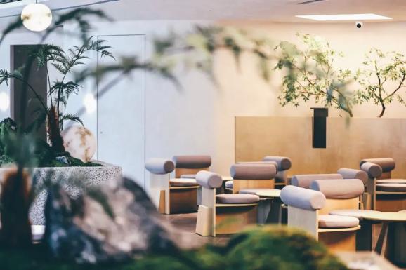 位于杭州西湖区的“茶晓涧”就是一座为所有爱品茶人建起的茶空间,这里没有太师椅,也没有雕梁画栋,摒弃了传统茶室复古陈旧的风格和粗糙的空间体验,把一盆盆绿植错落有致的分布在空间里的每个角落,连同屋外的 24 棵树,在一众大楼间生长出一隅绿色森林,把传统茶室与都市生活间的距离慢慢拉近拉近。在茶晓涧,茶事与身俱来的东方静谧与都市里的简约现代风完成了一次和谐对话。主理人 Simo 也希望通过自然的环境、亲近的服务、包容的氛围和优质的茶品,热忱欢迎每一个喜欢喝茶抑是不喜欢喝茶的朋友来这里, “带来内心疗愈,开拓生活边界”。