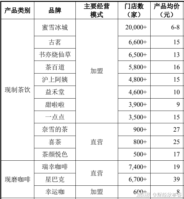 雪湖资本所列瑞幸竞品清单