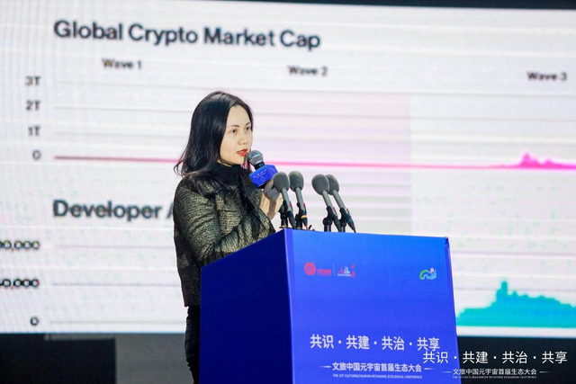 熊漪在《技艺合璧——数字藏品的守正创新与虚实结合之道》主题演讲中,就Web3.0正在发生的科技趋势提出全新观点,认为Web3.0正在构建一个分布式(多中心)的开放平台、焕活数字文化资产,这将带来全新的发展机遇。