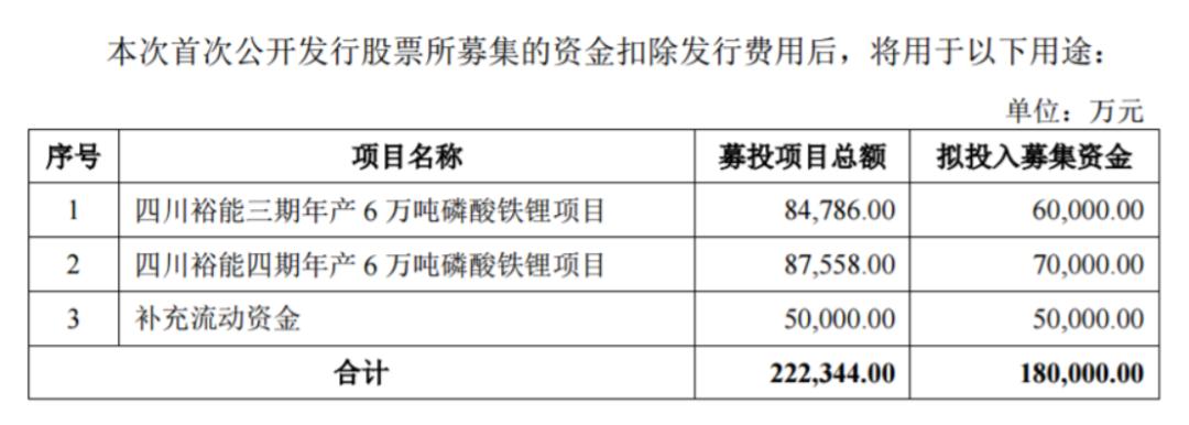 (湖南裕能IPO募资用途)