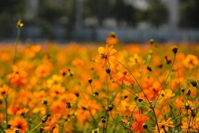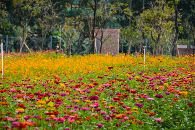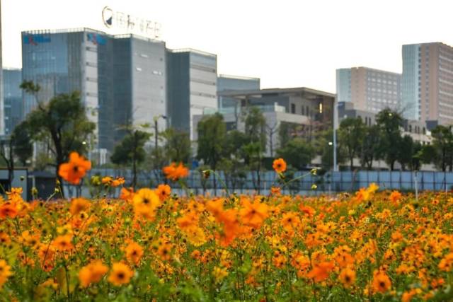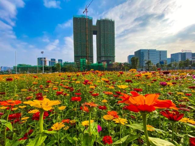 桂城国际创智园附近百日菊、硫华菊开得正盛,成千上万朵百日菊齐齐绽放,用绚烂色彩点亮三山的冬日。