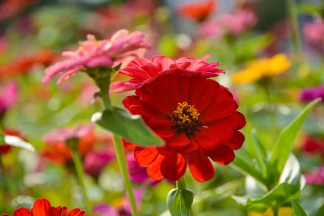 百日菊也拥有不同的特色,单瓣的百日菊精致灵动,重瓣的百日菊则透着一丝华丽,花瓣以花蕊为中心层层向外扩展,显得别致而优美。