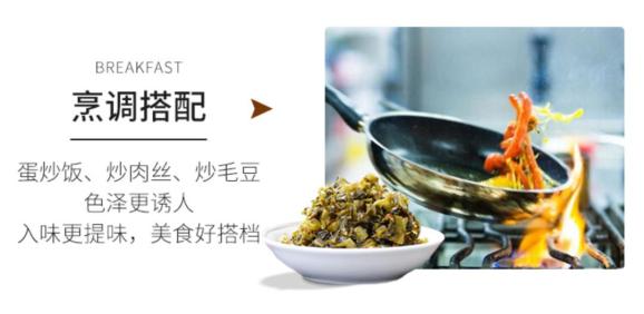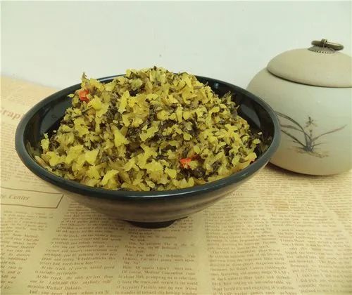 雪里蕻还被称为“春不老”,这也与它腌后的特性有关,与其他清一色的酱色咸菜不同,雪里蕻腌制过后仍然通体碧绿。《广群芳谱·蔬谱五》云:“四明有菜名雪里蕻,雪深,诸菜冻损,此菜独青。”意思是雪深之后,当冬菜都受冻受损,唯有雪里蕻依然色青新鲜。在一片沉寂的冬日里,端上一盘绿茵茵的雪里蕻,正如把春天的颜色也端到了饭桌上。