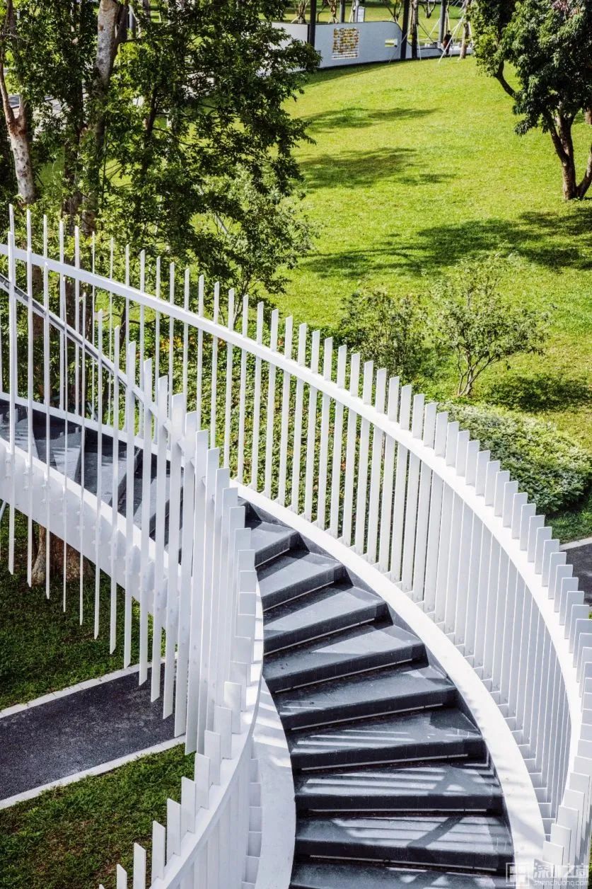 环形的云桥上设置有4座旋转梯出入口,每座旋转楼梯的外形都各具特色,倚靠高级感满满的楼梯,让好朋友帮自己按下快门,瞬间就得到一组能靓爆朋友圈的他拍相片!