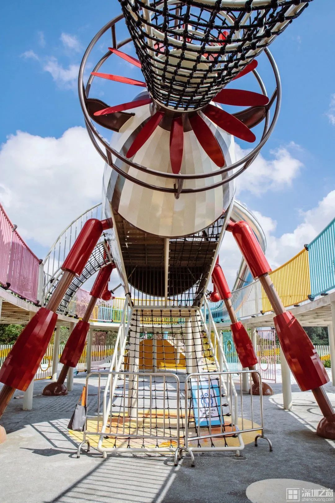乐园中心部分是火箭造型的大型攀爬架,可玩性极高的攀爬网和滑梯让很多“小祖宗”一玩就是一下午,迟迟不肯离开。